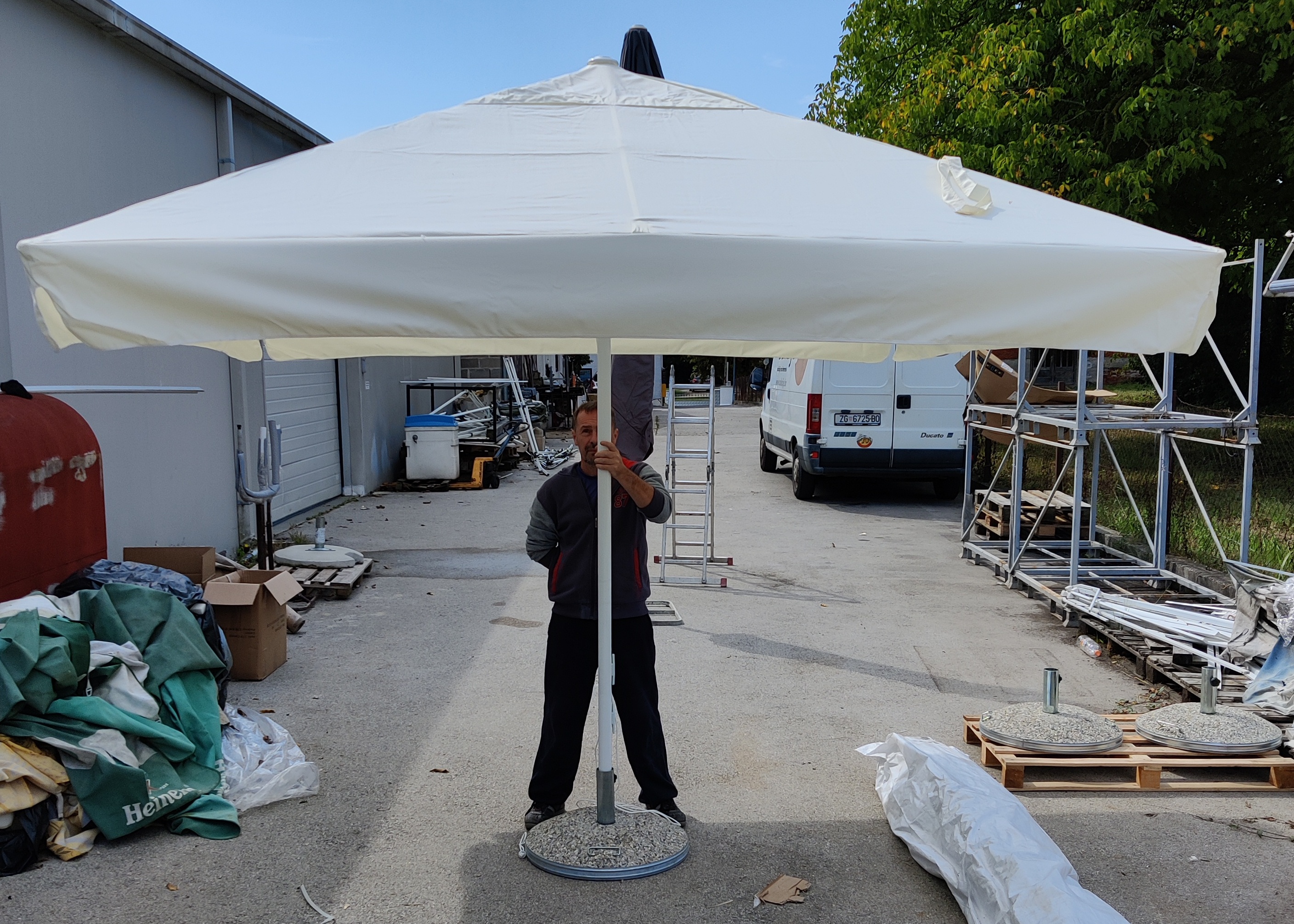 U PONUDI PROFESIONALNI UGOSTITELJSKI SUNCOBRANI SA NOVIM ILI REPARIRANIM PLATNIMA I KONSTRUKCIJAMA.